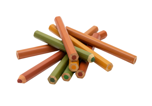 Isolated group of colored pencils for drawing in earth tones with no background here