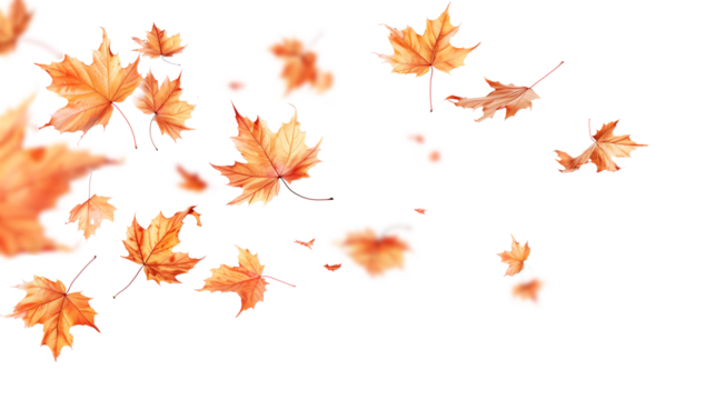 Autumn leaves falling from top to bottom on transparent background. Autumn background for your design