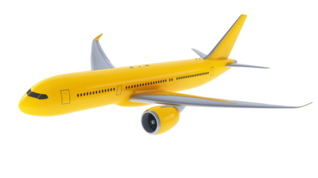 yellow plane 3d rendering on white background