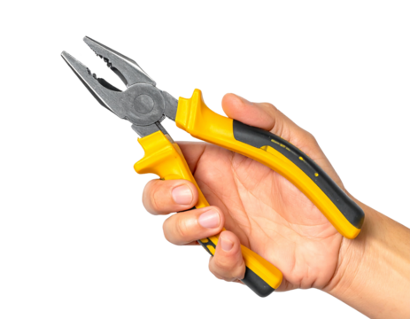 Using yellow pliers for diy projects home workshop tools close-up. Isolated on transparent background, png.