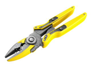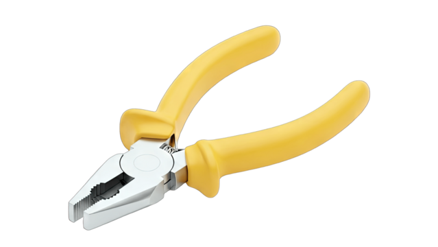 Yellow handled pliers isolated on transparent background, hand tool for gripping and cutting