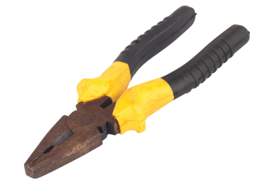 A reliable pair of yellow handled pliers ready to tackle any DIY or repair project with the on transparent background
