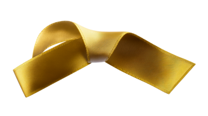 Yellow ribbon creating a flowing, wavy shape, isolated on a transparent background, symbolizing celebration, movement, and design