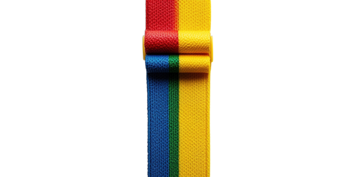 Vibrant yellow ribbons flowing gracefully in a dynamic arrangement against a white background