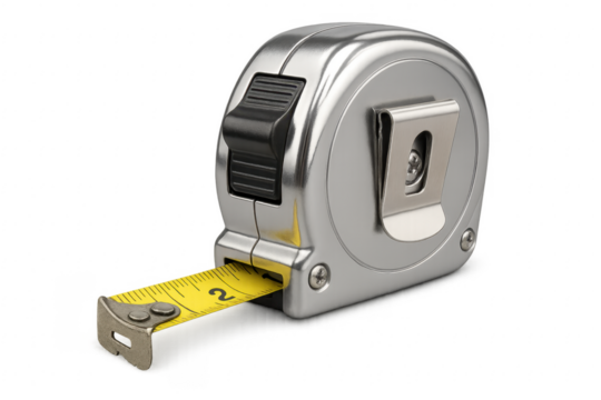 Metal tape measure with yellow ruler displaying measurement