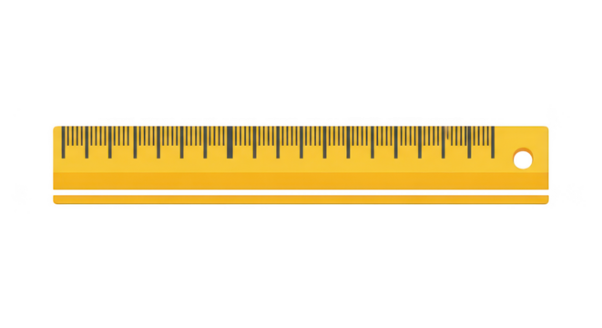 Yellow ruler displayed on a transparent background, showcasing measurement markings and details