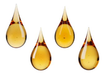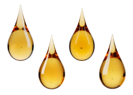 Four golden teardrop shaped objects isolated on transparent background