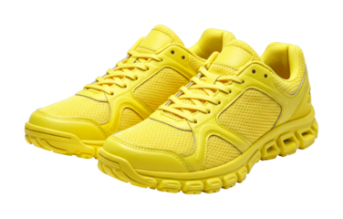 Pair of bright yellow athletic shoes with white laces and durable soles, designed for comfortable running, training, and everyday active lifestyles.