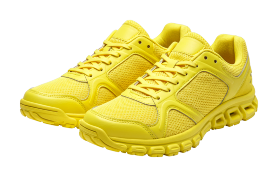 Bright yellow athletic shoe for outdoor activities and fitness