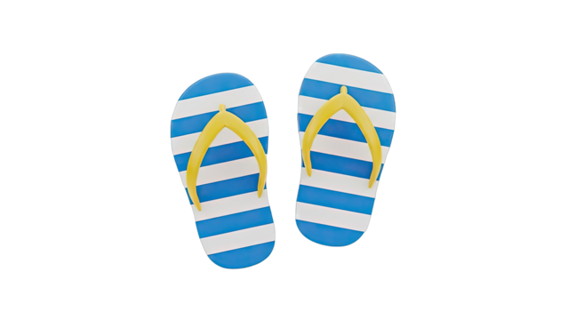 Pair of yellow flip flops isolated on transparent background, a summer beach footwear for casual and comfortable style