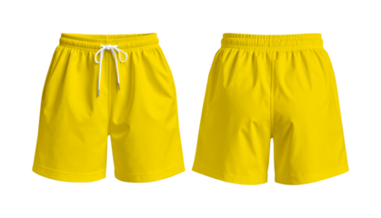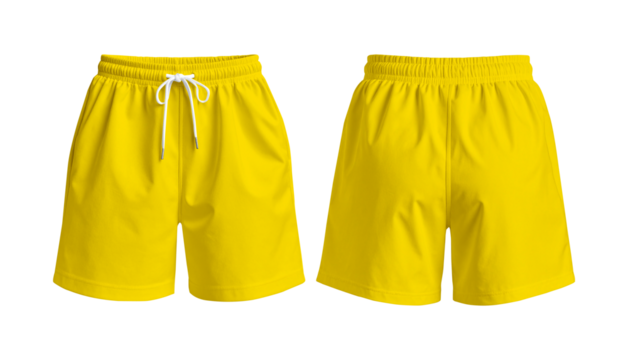 Yellow Shorts Mockup Front and Back View on Transparent Background