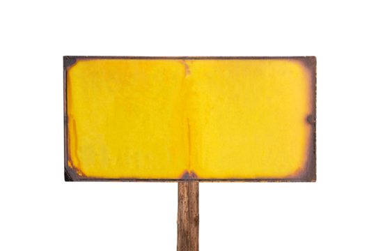 Weathered Yellow Sign with Rust Detail on White  or Transparent BG