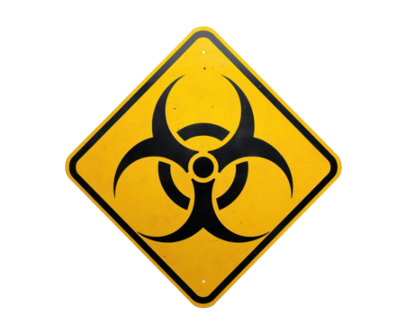 Hazardous Warning, Biohazard Symbol Isolated on Square Yellow Sign Illustrates Biological Risk