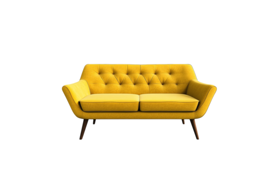 Modern Yellow Sofa Elegantly Staged on Transparent Background for Interior Design Inspiration.