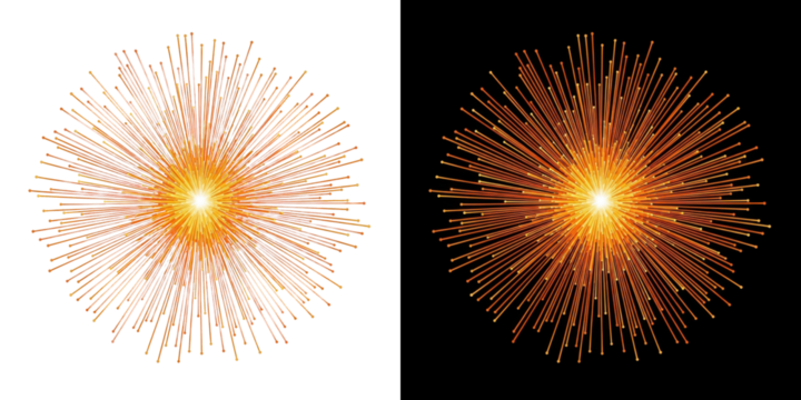 Radiant orange and yellow sparks fly outward from a glowing core, creating a warm and energetic explosion with lens flare effects. PNG