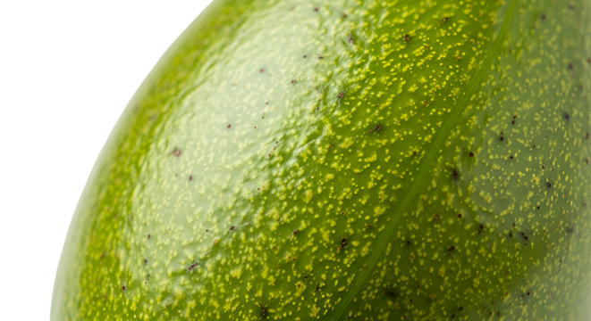 Close-up Photo Shows Avocado Skin Texture with Green and Yellow Spots on Black Backdrop