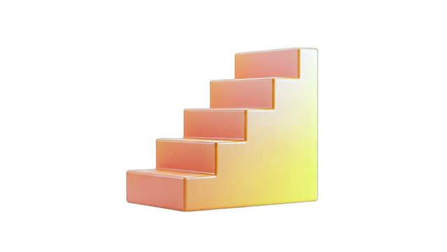 Stick figures collaborating to climb a yellow block staircase isolated on transparent background