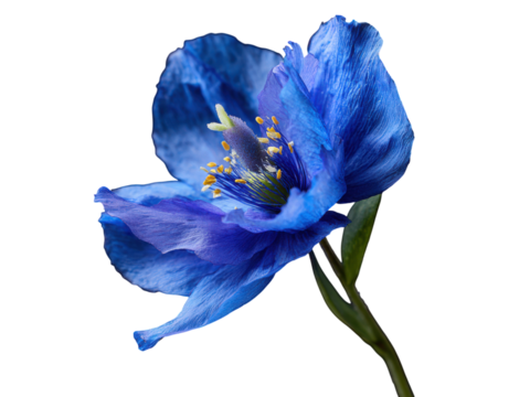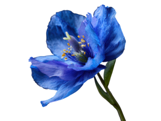 Delicate blue poppy with yellow stamens on black background flower bloom, Isolated, Png Transparent Background