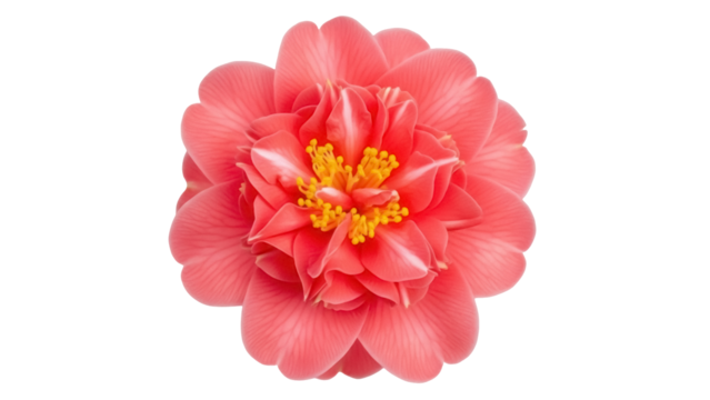 Pink camellia flower with yellow stamens isolated on a transparent background rose-like flower light pink petals