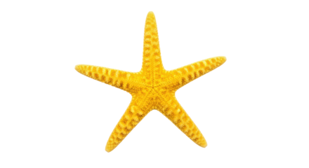 Isolated yellow starfish with five arms and textured surface on a plain background close up view on transparent background
