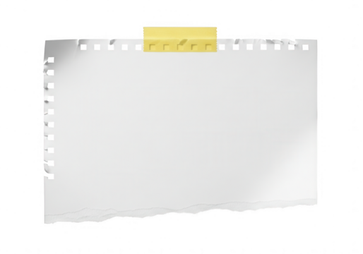 A torn piece of paper a yellow sticky note attached, isolated on transparent background