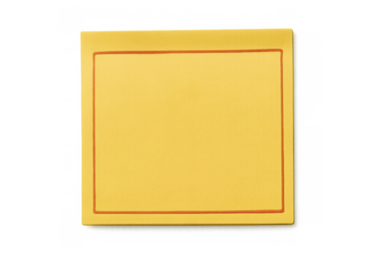 Blank yellow sticky note pad with orange border, isolated on transparent background, providing copy space for text or design