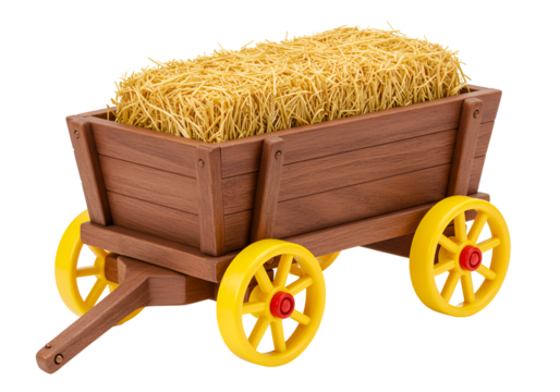 Creative wooden toy wagon filled with yellow straw for children or decoration