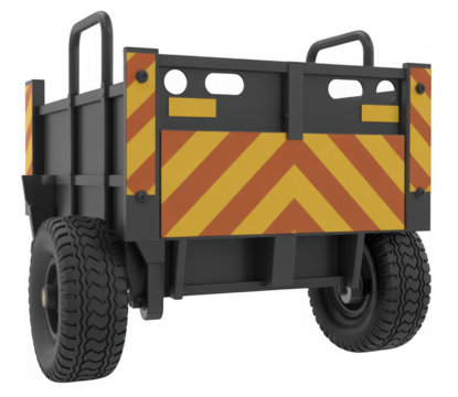 Concrete road barrier with diagonal black and yellow safety stripes isolated on transparent background, png