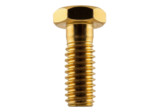 Isolated brass bolt studio shot with coarse thread metal fastener for engineering product