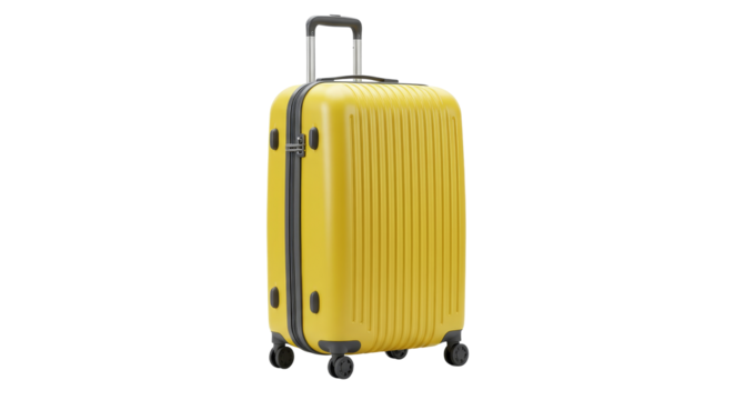 Bright yellow suitcase ready for travel adventure, Isolated On Transparent Background, Png