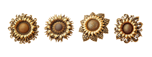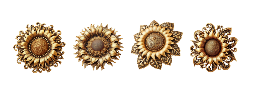 a collection of soft pastel sunflowers flowers isolated on a transparent background, generative ai