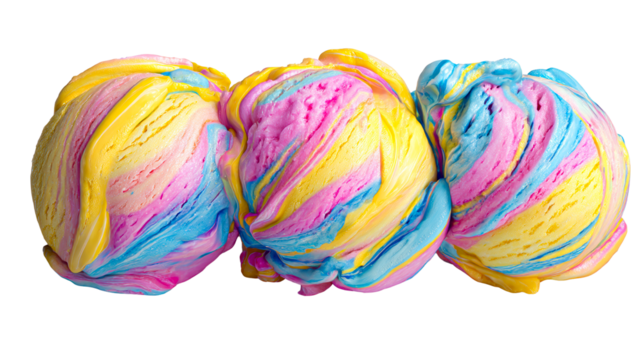 Swirls of vibrant pastel ice cream scoops in pink, blue, and yellow create a fun and delicious dessert presentation perfect for summer treats and celebrations.