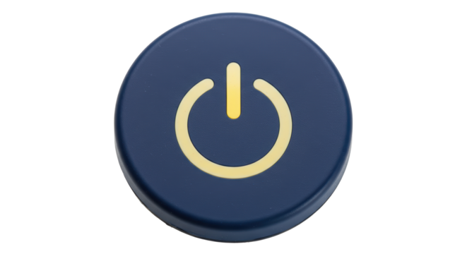 Isolated Power Button with Yellow Symbol on Dark Blue Background