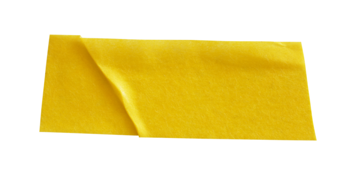 Bright yellow tape piece with visible wrinkles and texture isolated on a for design isolated on transparent background