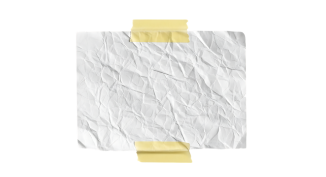 Torn off-white paper piece attached with yellow tape for notes or messages transparent background