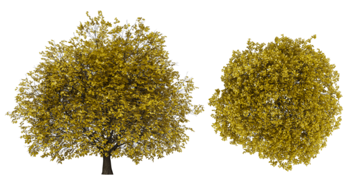A group of green and yellow trees with a transparent background