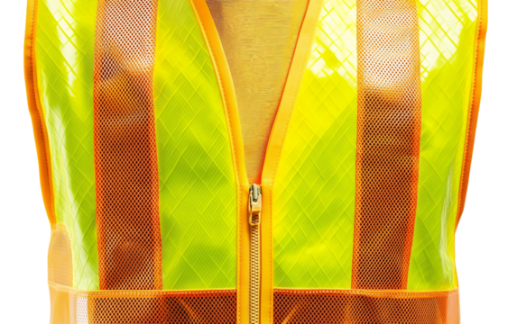 Close up of a bright yellow safety reflective vest highlighting its texture and details