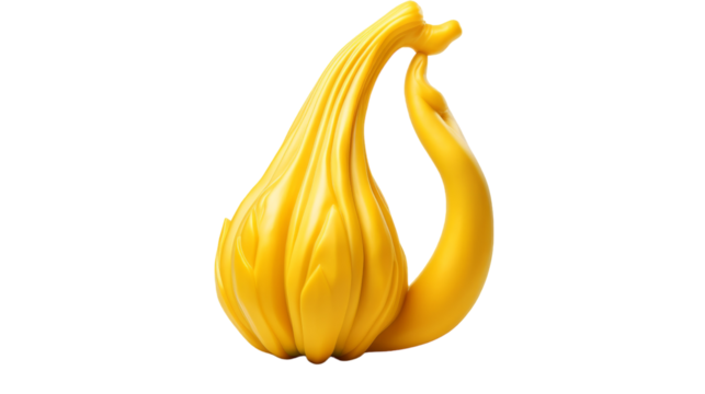 A vibrant yellow monstera leaf in a textured yellow vase isolated on transparent background