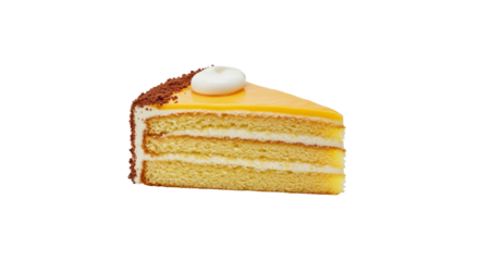 Delicious yellow cake slice bakery display food bright view isolated on transparent background, png