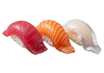 Yellowtail sashimi with aji amarillo and soy dressing isolated on transparent background