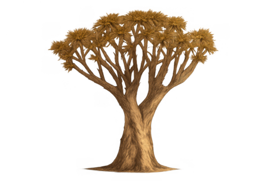 Dragon blood tree artwork featuring its distinctive umbrella-shaped canopy and branching structure on a transparent background