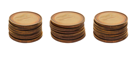 Stacks of transparent gold coins reflecting wealth and prosperity