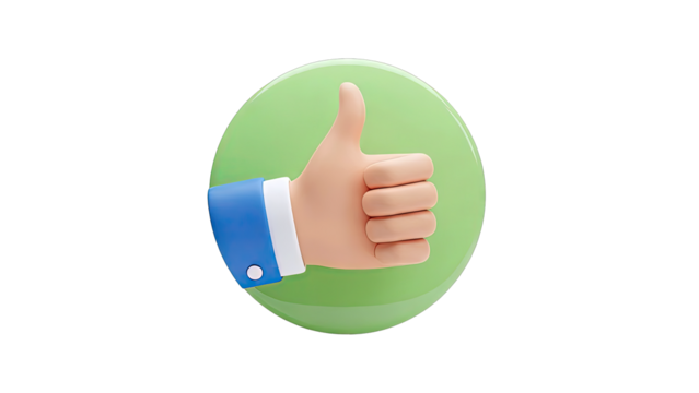 Green thumbs up PNG isolated on transparent background, like button graphic for social media and positive feedback