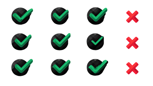 Isometric Green And Red Checkmarks And Crosses Buttons