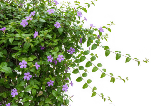 Purple brunfelsia vine with green leaves isolated on transparent background