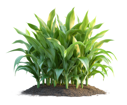 Cultivating healthy corn plants in a fertile field environment isolated on transparent background