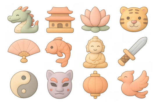 Vibrant bagua icon with yin yang motif for feng shui design and decoration