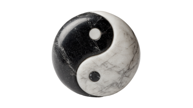 Yin yang symbol, a representation of balance and harmony, in a contrasting design with dark and light