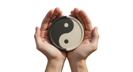 Yin yang heart made of chocolate, isolated on transparent cutout background