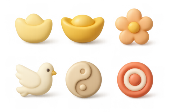 3D Rendering of a Red and White Yin Yang Symbol with Pearl Accents